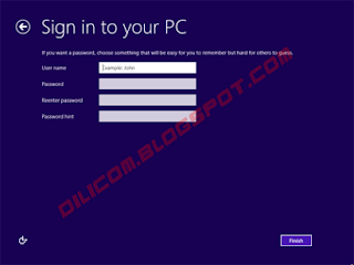 20. Tentukan nama untuk user komputer anda lalu klik Finish